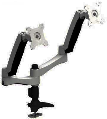 Aavara Ai742 Free Style Lcd Stand – Dual Flip Mount 2x Lcd – Grommet Base – 2 Independent Swing Arms Horizontal & Vertical Shift +/-90 Swivelable 110 ( +90~-20 ) Tilt Angle Adjustable 360 Rotation Pivot For Landscape Or Portrait Height Adjustable