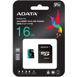 Adata Premier Pro 16gb MicroSdhc UHS-i U3 ideal for 4k recording and A2 rated app performance, includes SD Adapter and is designed for smartphones, drones and action cameras