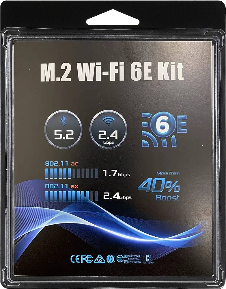 Expand the networking capabilities of your ASRock DeskMini X300 series chassis with the ASRock DeskMini Wi-Fi 6 M.2 Module Kit. It allows you to easily connect wirelessly to any router, range extender and Bluetooth device. Featuring certified Wi-Fi 6, Dual-band support and up to 5Ghz, the Wi-Fi 6E M.2 Module Kit is packed with many features. Its Wi-Fi 6E 802.11 ax connection gives you improved performance and up to 40% boost compared to an ac connection. It also supports Bluetooth 5.1 for connecting to Bluetooth peripherals and accessories making it even more convenient.