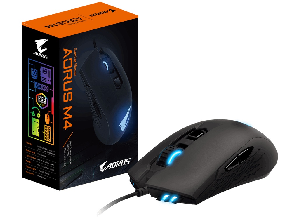 Gigabyte Aorus M4 Optical Gaming Mouse – Black With Customizable Rgb (16.8m Color) In 4 Zones 98g Lightweight Ambidextrous Design 50 Million Clicks Omron Switch 6 Pogramable Buttons Pixart Pmw3988 50-6400dpi 200ips ( Inch Per Sec ) 50g Acceleration