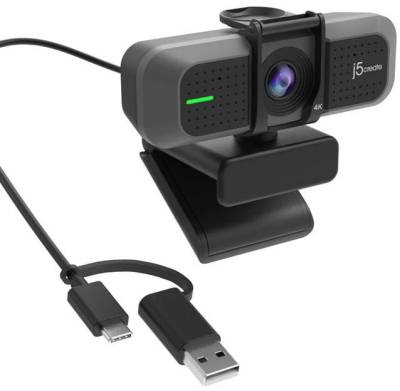 J5 Jvu430 4k Hd Webcam – With 2x Digital Zoom 360 Rotation F/2.0 Aperture With Low Light Enhancement Built-In Privacy Lens Cover + High-Fidelity Dual Microphones – Support Full 4k Hd @30fps + H.264 Video Decoding Tripod / Clip Mountable Or Desktop Stand