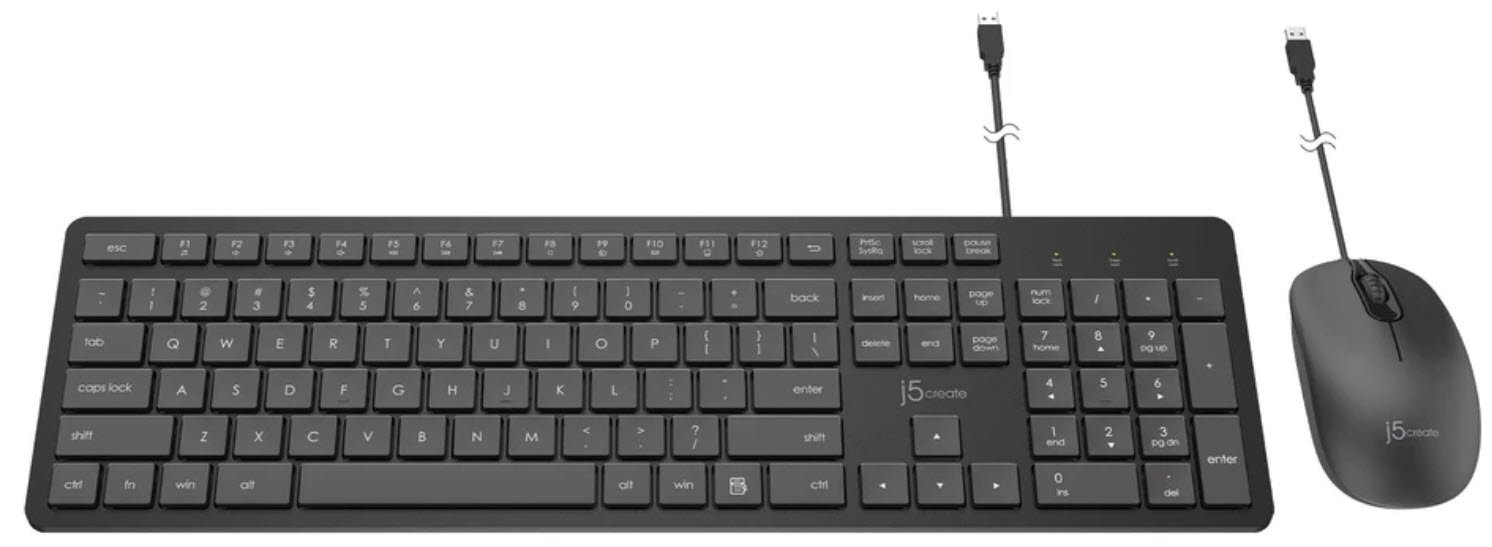 J5create Desktop Jikmu115 Black Full-Size Membrane Kb + 1200dpi Optical Wheel Mouse 12 Multimedia Keys Low-Profile Keyframe – Usb