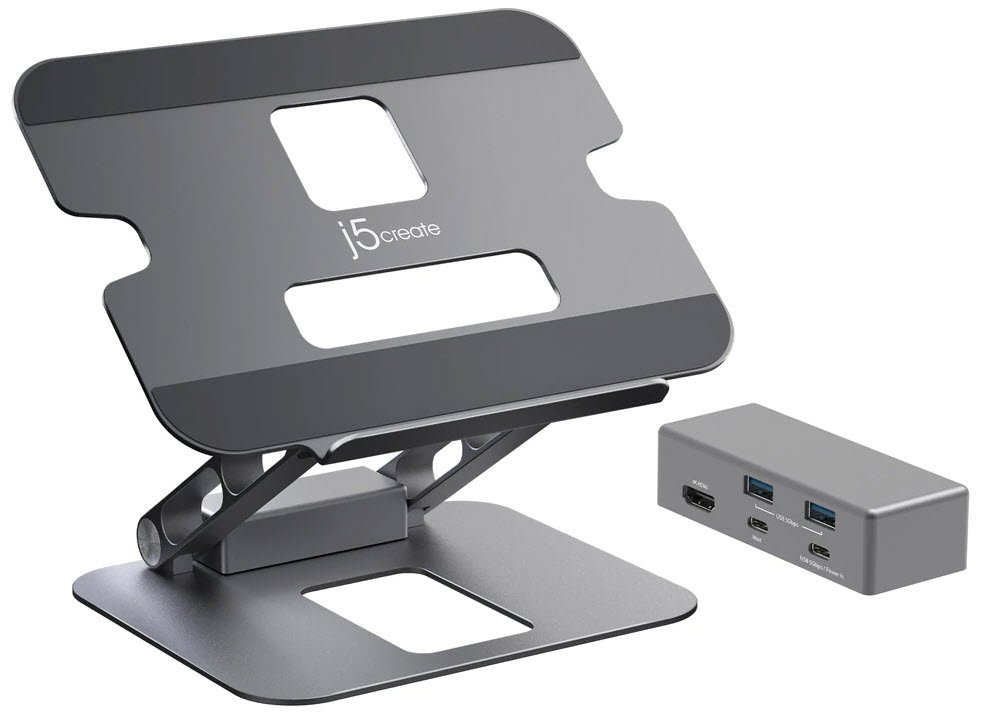 J5create Jts327 Multi-Angle Mobile Stand With Mini Dock Upto 4kg 16″ Notebook – Aluminum Construction Adjustable Angle And Height Foldable Design With Magnetic Attached Type-C Mini Dock ( 2x Type-A + 1x Type-C With 100w Pd + 4k Hdmi )