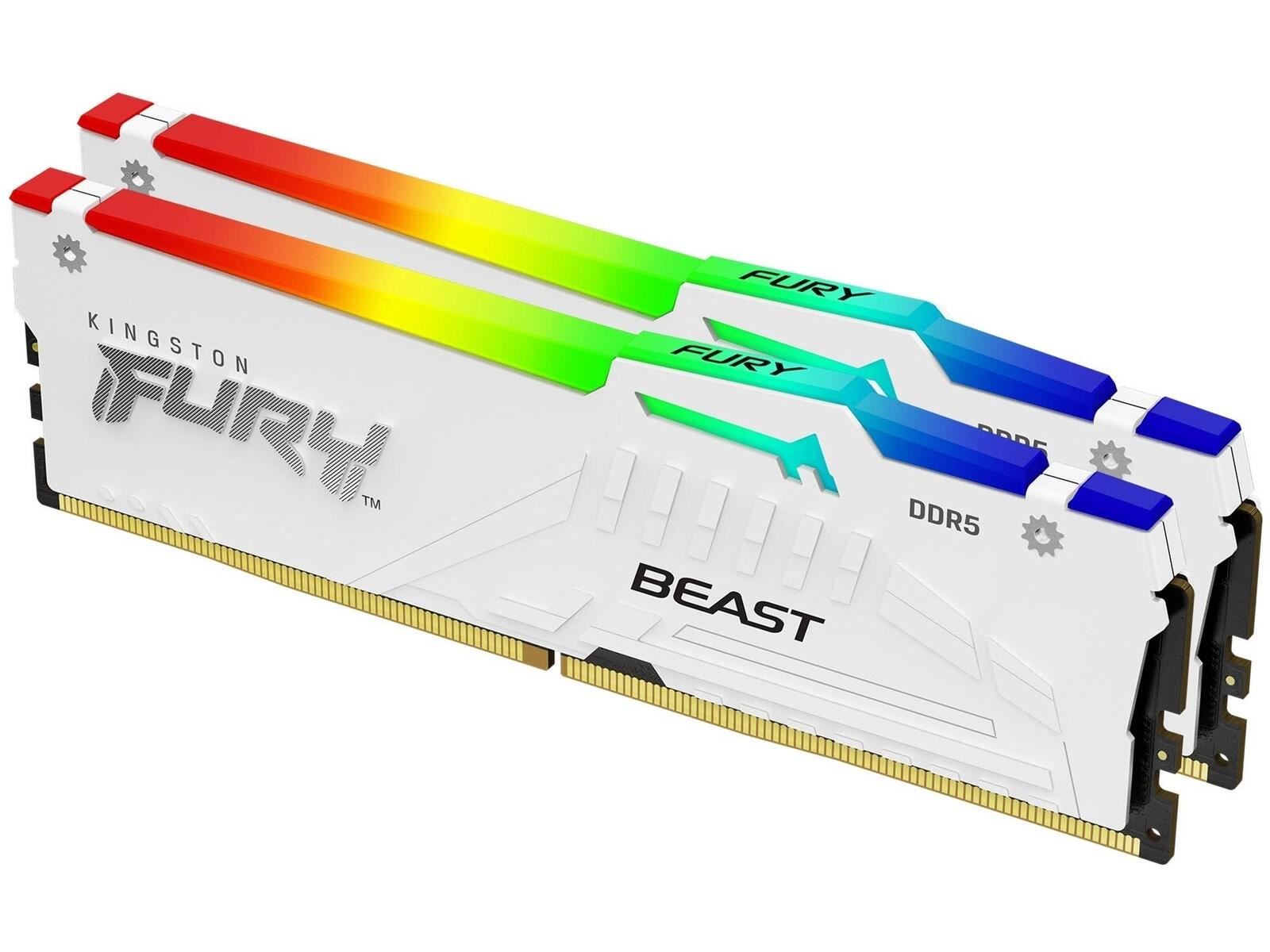 Memory Name: Kingston Fury Beast Rgb Ddr5 6000mhz 64gb (2 x 32 gb) Cl30 288pins 1.25v built in memory management with white heatsink